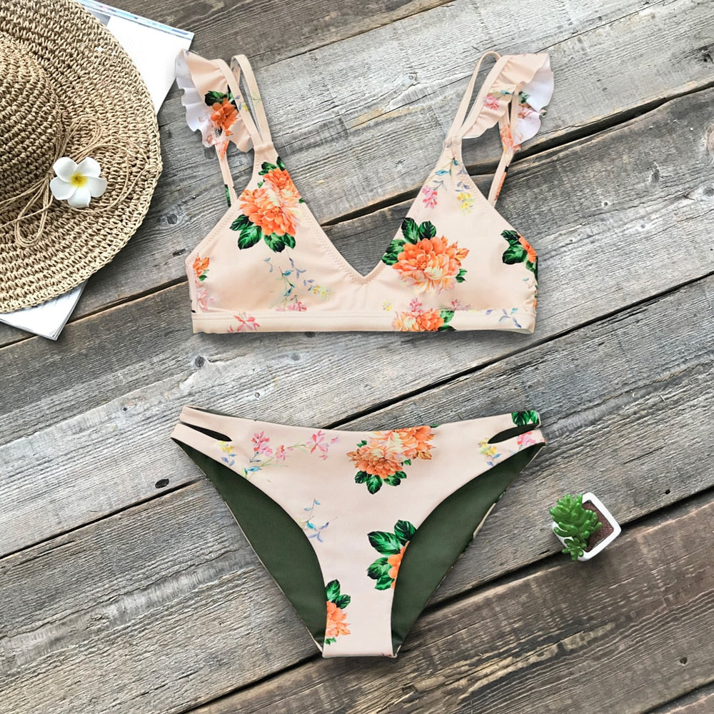 Style: V-neck bikini top,Reversible bikini bottom ,Padded cups